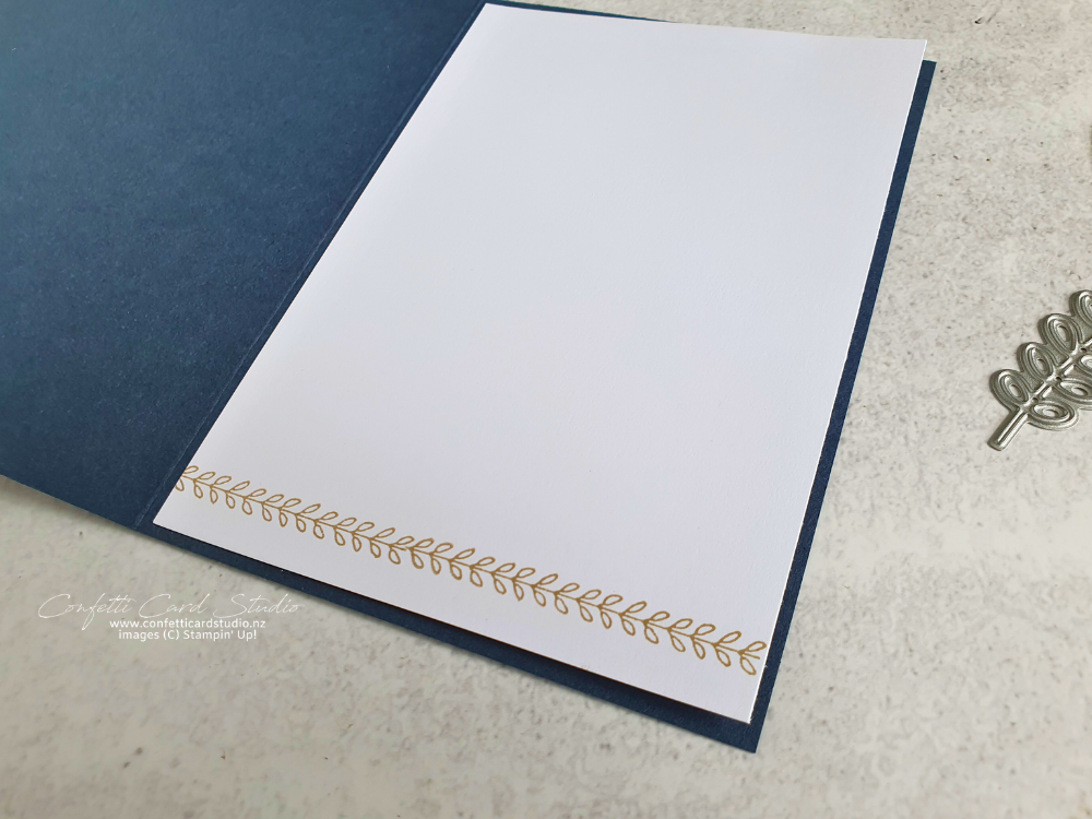 Inside the card, I used another Friendly Foliage stamp to create a cute coordinating border in Crumb Cake ink. This ties the inside of the card to the front, keeping the design cohesive and polished.